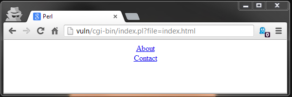 Notice how the file variable is getting changed whenever we visit another link on the website. As I explained, the index.cgi is a web page (Perl/CGI script) that acts as a foothold for displaying various contents on the website. The source code looks something like this: